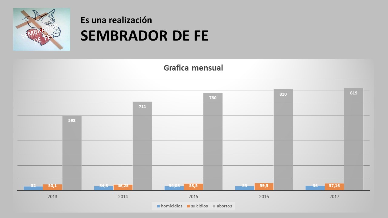 Esta ilustración parece ilustrarnos una cultura que se direcciona al no respeto, a la no sujeción u obediencia hacia el bien supremo, soberano, superior de todo ser humano, de todo hombre, toda mujer que habita, habitará este planeta que es el derecho a la vida, de que servirían todo los demás derechos, si no hay vida, para nada, por lo tanto la primera preocupación debe de ser proteger la vida y crear ámbitos saludables para que esta se desarrolle de la mejor manera, es responsabilidad de la iglesia interceder ante Dios reprendiendo los espíritus que se mueven alrededor de tales acontecimientos, si el evangelio llega a las personas estos guarismos cambiarán para bien.